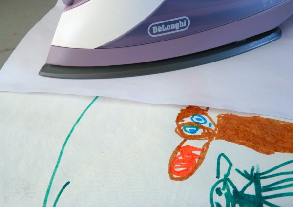 3. Heat set the artwork. Tune your iron in on the cotton setting. Cover ironing area with paper. Iron on the reverse side for a few minutes.