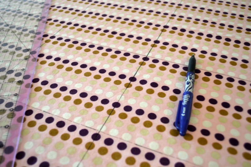 For step 2 of the instructions, when you are supposed to use chalk to mark your stitching lines, I wrote all over the fabric using my Frixion pen.