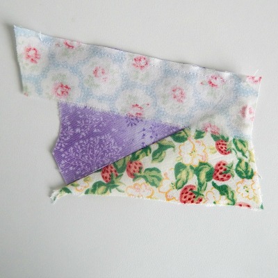 1) Select scraps that range in sizes from small to medium of a similar palette.